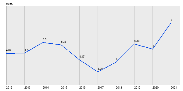 4.67 млн. руб, а в 2021 году - 7 млн. руб. Таким образом, средняя стоимость однокомнатных квартир в районе "" за