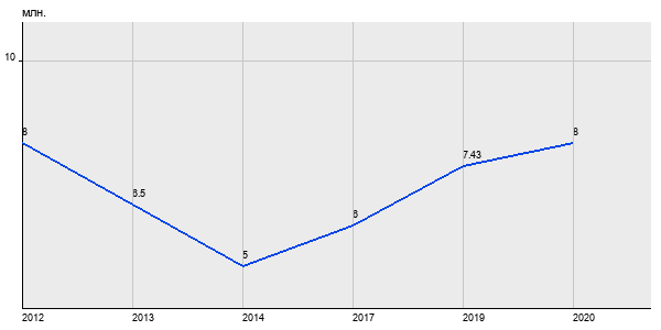 8 млн. руб, а в 2020 году - 8 млн. руб. Таким образом, средняя стоимость двухкомнатных квартир в районе "Чертаново Южное" за
