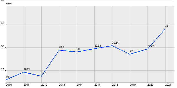 16 млн. руб, а в 2021 году - 38 млн. руб. Таким образом, средняя стоимость двухкомнатных квартир в районе "" за