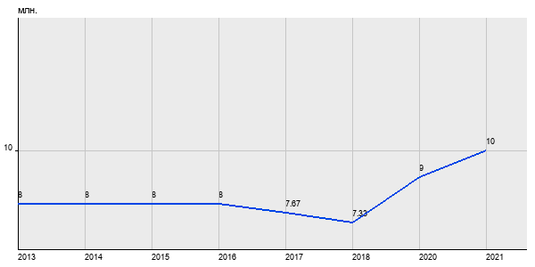 8 млн. руб, а в 2021 году - 10 млн. руб. Таким образом, средняя стоимость трёхкомнатных квартир в районе "" за
