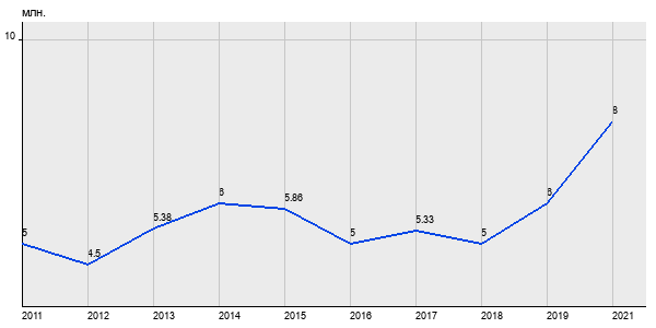 5 млн. руб, а в 2021 году - 8 млн. руб. Таким образом, средняя стоимость однокомнатных квартир в районе "" за
