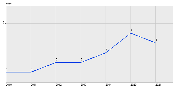 5 млн. руб, а в 2021 году - 8 млн. руб. Таким образом, средняя стоимость однокомнатных квартир в районе "" за