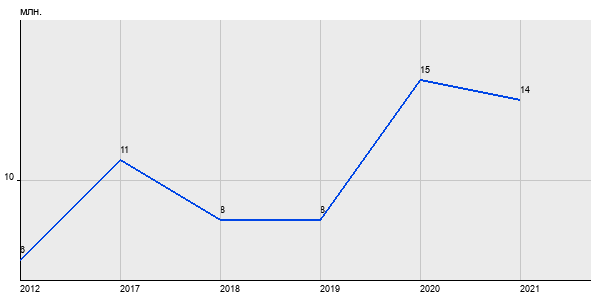 6 млн. руб, а в 2021 году - 14 млн. руб. Таким образом, средняя стоимость однокомнатных квартир в районе "Таганский" за