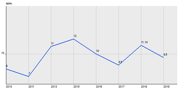8 млн. руб, а в 2019 году - 9.5 млн. руб. Таким образом, средняя стоимость однокомнатных квартир в районе "Алексеевский" за