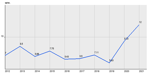 7 млн. руб, а в 2021 году - 12 млн. руб. Таким образом, средняя стоимость однокомнатных квартир в районе "" за