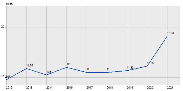 9.5 млн. руб, а в 2021 году - 18.33 млн. руб. Таким образом, средняя стоимость двухкомнатных квартир в районе "" за