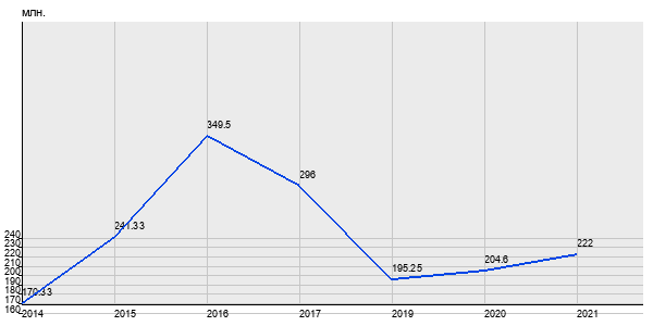 170.33 млн. руб, а в 2021 году - 222 млн. руб. Таким образом, средняя стоимость четырёхкомнатных квартир в районе "Хамовники" за