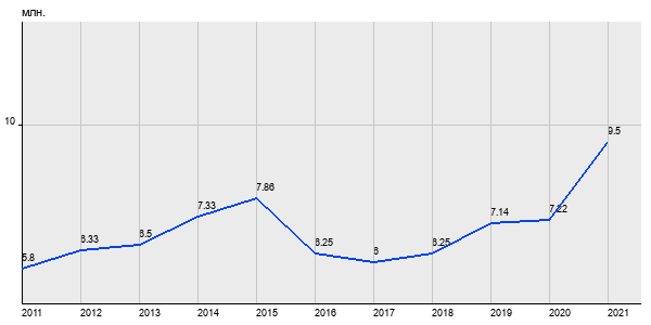 5.8 млн. руб, а в 2021 году - 9.5 млн. руб. Таким образом, средняя стоимость двухкомнатных квартир в районе "Текстильщики" за