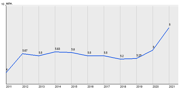 4 млн. руб, а в 2021 году - 8 млн. руб. Таким образом, средняя стоимость однокомнатных квартир в районе "Преображенское" за