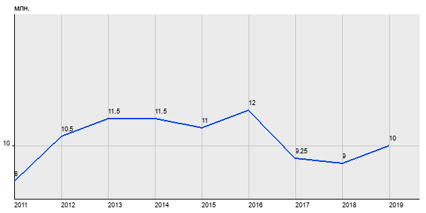 8 млн. руб, а в 2019 году - 10 млн. руб. Таким образом, средняя стоимость трёхкомнатных квартир в районе "Марьино" за