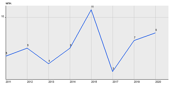 5 млн. руб, а в 2020 году - 8 млн. руб. Таким образом, средняя стоимость однокомнатных квартир в районе "" за
