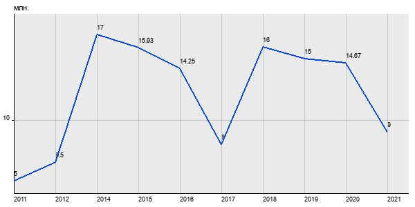 5 млн. руб, а в 2021 году - 9 млн. руб. Таким образом, средняя стоимость двухкомнатных квартир в районе "" за
