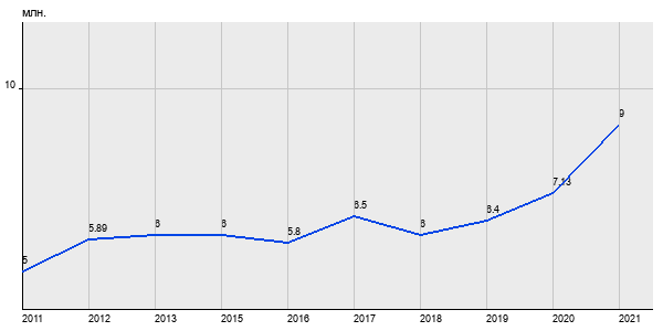 5 млн. руб, а в 2021 году - 9 млн. руб. Таким образом, средняя стоимость однокомнатных квартир в районе "" за