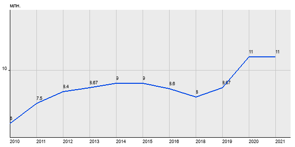 6 млн. руб, а в 2021 году - 11 млн. руб. Таким образом, средняя стоимость трёхкомнатных квартир в районе "Зябликово" за