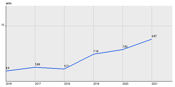 5.5 млн. руб, а в 2021 году - 8.67 млн. руб. Таким образом, средняя стоимость однокомнатных квартир в районе "Щукино" за