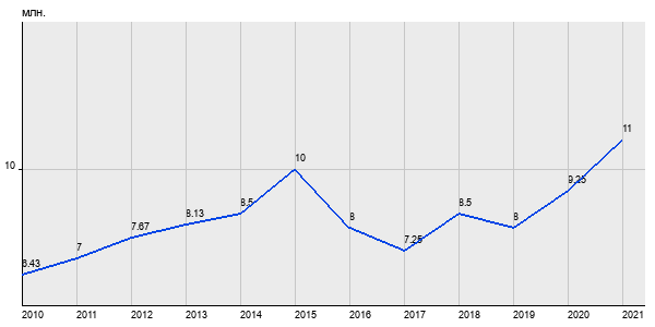 6.43 млн. руб, а в 2021 году - 11 млн. руб. Таким образом, средняя стоимость двухкомнатных квартир в районе "Текстильщики" за
