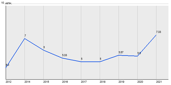 4.5 млн. руб, а в 2021 году - 7.33 млн. руб. Таким образом, средняя стоимость однокомнатных квартир в районе "Ярославский" за