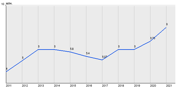4 млн. руб, а в 2021 году - 8 млн. руб. Таким образом, средняя стоимость однокомнатных квартир в районе "Северное Бутово" за