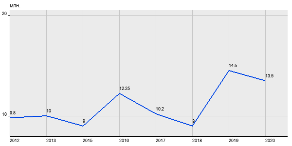 9.8 млн. руб, а в 2020 году - 13.5 млн. руб. Таким образом, средняя стоимость двухкомнатных квартир в районе "" за
