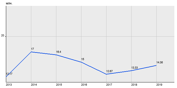12.17 млн. руб, а в 2019 году - 14.36 млн. руб. Таким образом, средняя стоимость однокомнатных квартир в районе "" за