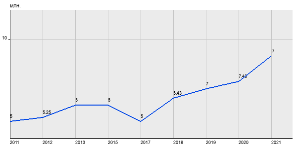 5 млн. руб, а в 2021 году - 9 млн. руб. Таким образом, средняя стоимость однокомнатных квартир в районе "" за