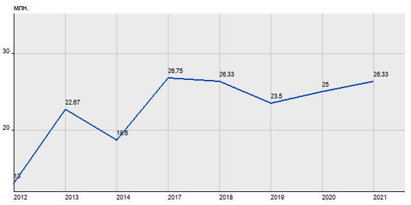 13 млн. руб, а в 2021 году - 26.33 млн. руб. Таким образом, средняя стоимость двухкомнатных квартир в районе "" за
