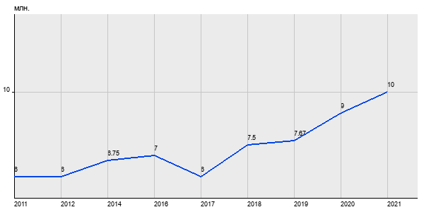 6 млн. руб, а в 2021 году - 10 млн. руб. Таким образом, средняя стоимость двухкомнатных квартир в районе "Бутырский" за