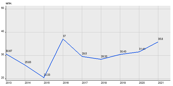 30.67 млн. руб, а в 2021 году - 35.8 млн. руб. Таким образом, средняя стоимость двухкомнатных квартир в районе "Хамовники" за