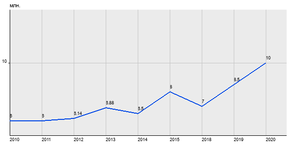 6 млн. руб, а в 2020 году - 10 млн. руб. Таким образом, средняя стоимость двухкомнатных квартир в районе "Ново-Переделкино" за