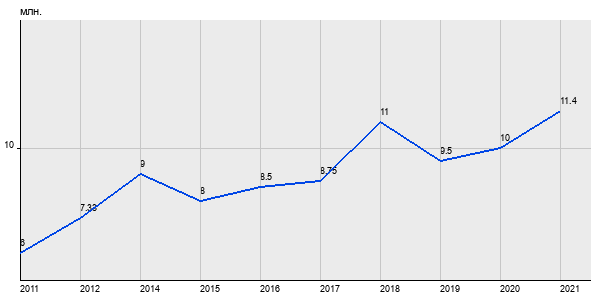 6 млн. руб, а в 2021 году - 11.4 млн. руб. Таким образом, средняя стоимость однокомнатных квартир в районе "Таганский" за