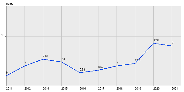 6 млн. руб, а в 2021 году - 9 млн. руб. Таким образом, средняя стоимость двухкомнатных квартир в районе "Орехово-Борисово Северное" за