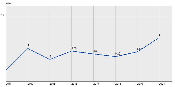 5 млн. руб, а в 2021 году - 8 млн. руб. Таким образом, средняя стоимость однокомнатных квартир в районе "Вешняки" за