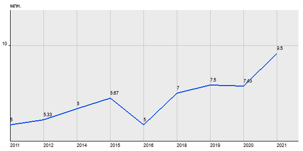 5 млн. руб, а в 2021 году - 9.5 млн. руб. Таким образом, средняя стоимость двухкомнатных квартир в районе "Гольяново" за