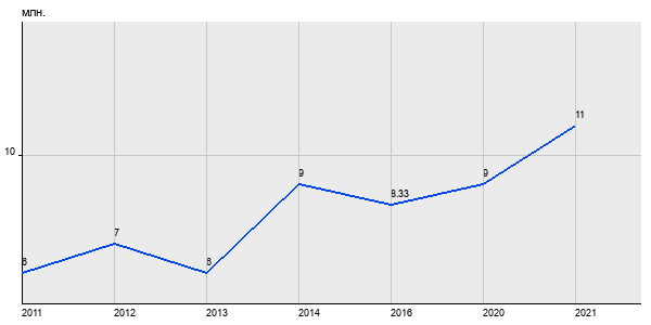 6 млн. руб, а в 2021 году - 11 млн. руб. Таким образом, средняя стоимость однокомнатных квартир в районе "" за