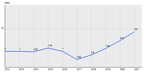 7 млн. руб, а в 2021 году - 9.6 млн. руб. Таким образом, средняя стоимость однокомнатных квартир в районе "Нагатинский Затон" за