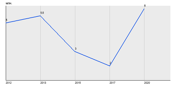 5 млн. руб, а в 2020 году - 6 млн. руб. Таким образом, средняя стоимость однокомнатных квартир в районе "Восточное Дегунино" за