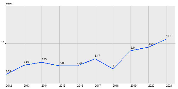 6.33 млн. руб, а в 2021 году - 10.5 млн. руб. Таким образом, средняя стоимость однокомнатных квартир в районе "Нагатинский Затон" за