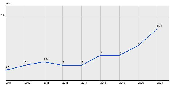 4.5 млн. руб, а в 2021 году - 8.71 млн. руб. Таким образом, средняя стоимость однокомнатных квартир в районе "Ново-Переделкино" за