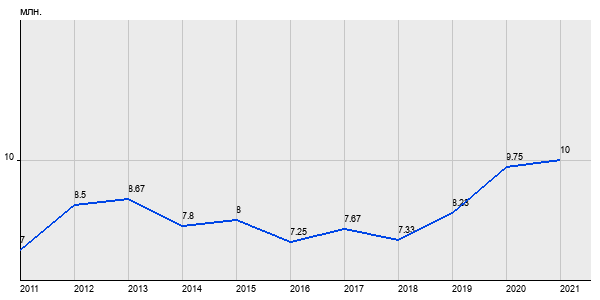 7 млн. руб, а в 2021 году - 10 млн. руб. Таким образом, средняя стоимость двухкомнатных квартир в районе "Южное Бутово" за