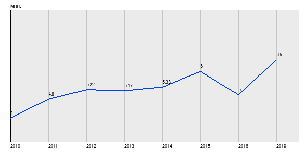 4 млн. руб, а в 2019 году - 6.5 млн. руб. Таким образом, средняя стоимость однокомнатных квартир в районе "Марьино" за