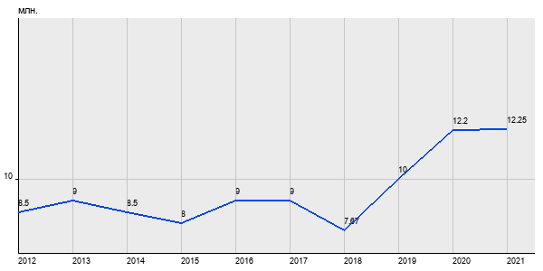 8.5 млн. руб, а в 2021 году - 12.25 млн. руб. Таким образом, средняя стоимость трёхкомнатных квартир в районе "Ясенево" за