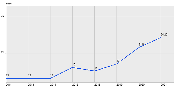 13 млн. руб, а в 2021 году - 24.25 млн. руб. Таким образом, средняя стоимость двухкомнатных квартир в районе "" за