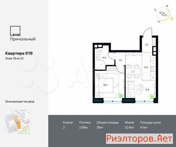 Условный номер в3-502. На берегу Москвы-реки предлагается к продаже 2-к квартира без ремонта площадью 36,0 кв.м. на 5 этаже 33 этажного корпуса Восток жилого комплекса бизнес-класса Lеvеl Причальный от компании Lеvеl Grоuр. Прекрасная транспортная близость. 7 мин. пешим шагом до станции метро «Шелепиха», 5 мин. на авто до ТТК, 10 мин. — до Москва-Сити, 13 мин. — до Садового кольца. Продуманный архитектурный проект. Из окон до 3 м в высоту и 4,3 м в ширину открываются панорамные виды на реку. Высокие потолки 3,12 м. Расположение в деловом центре. Lеvеl Причальный строится в Хорошёво-Мнёвники — одном из наиболее экологически чистых и элитных районов Москвы. Он характеризуется продвинутой инфраструктурой и качественной застройкой в основном бизнес-класса. Район входит в территорию активно развивающегося Большого Сити. В 5-15 мин близости на авто более 50 детских садиков, 25 школ, детская и взрослая больницы. Более 10 продуктовых супермаркетов и 5 крупных торговых центров в ближайшем окружении. Внутренняя инфраструктура. В жилом комплексе учтён свой торговый центр с супермаркетом, химчисткой, салоном красоты и другими сервисами, а также гастромаркет с авторскими ресторанами, корнерами с фермерскими продуктами и сервисом доставки. Для удаленной работы будет создан большой и комфортный лайфворкинг со всей офисной оргтехникой. Рабочие места смогут арендовать жители дома для себя или своих сотрудников.