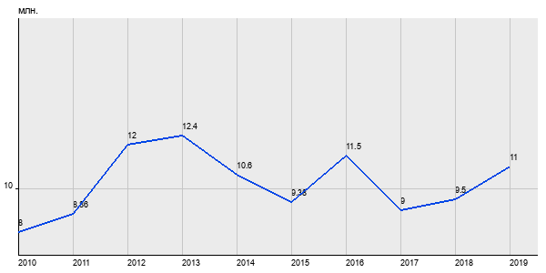 8 млн. руб, а в 2019 году - 11 млн. руб. Таким образом, средняя стоимость двухкомнатных квартир в районе "Алтуфьевский" за