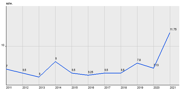 7 млн. руб, а в 2021 году - 11.75 млн. руб. Таким образом, средняя стоимость двухкомнатных квартир в районе "Южное Бутово" за