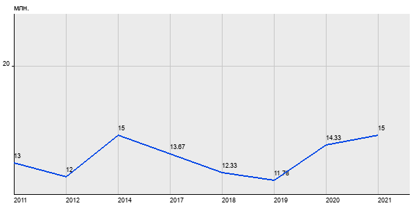 13 млн. руб, а в 2021 году - 15 млн. руб. Таким образом, средняя стоимость трёхкомнатных квартир в районе "" за