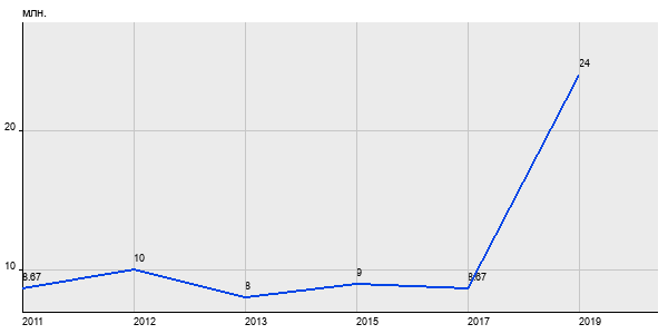 8.67 млн. руб, а в 2019 году - 24 млн. руб. Таким образом, средняя стоимость трёхкомнатных квартир в районе "" за