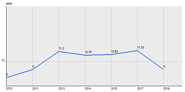 8 млн. руб, а в 2018 году - 9 млн. руб. Таким образом, средняя стоимость трёхкомнатных квартир в районе "Котловка" за