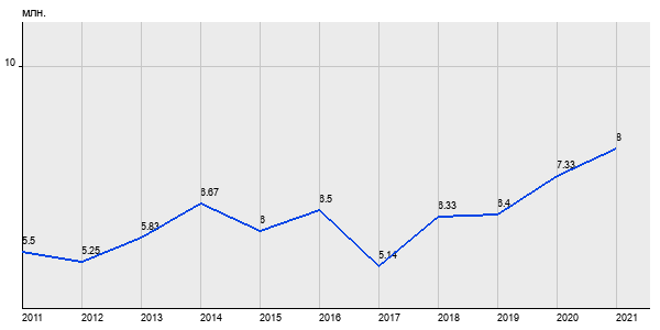 5.5 млн. руб, а в 2021 году - 8 млн. руб. Таким образом, средняя стоимость однокомнатных квартир в районе "Северное Тушино" за