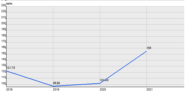 121.75 млн. руб, а в 2021 году - 155 млн. руб. Таким образом, средняя стоимость трёхкомнатных квартир в районе "Красносельский" за
